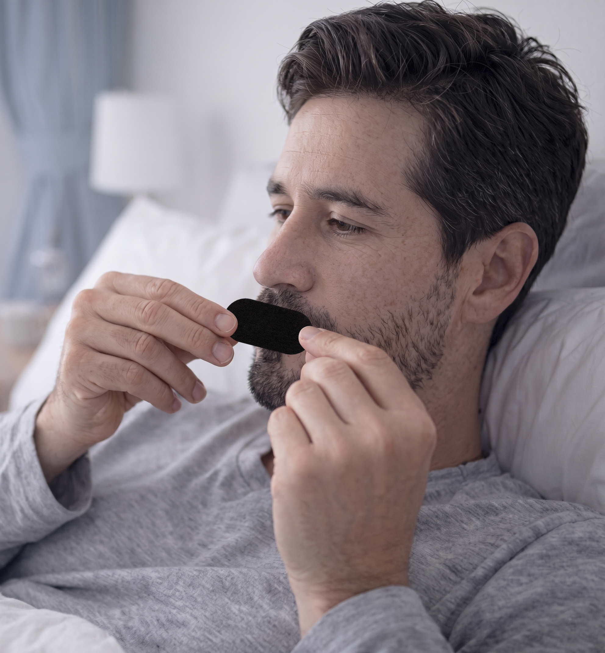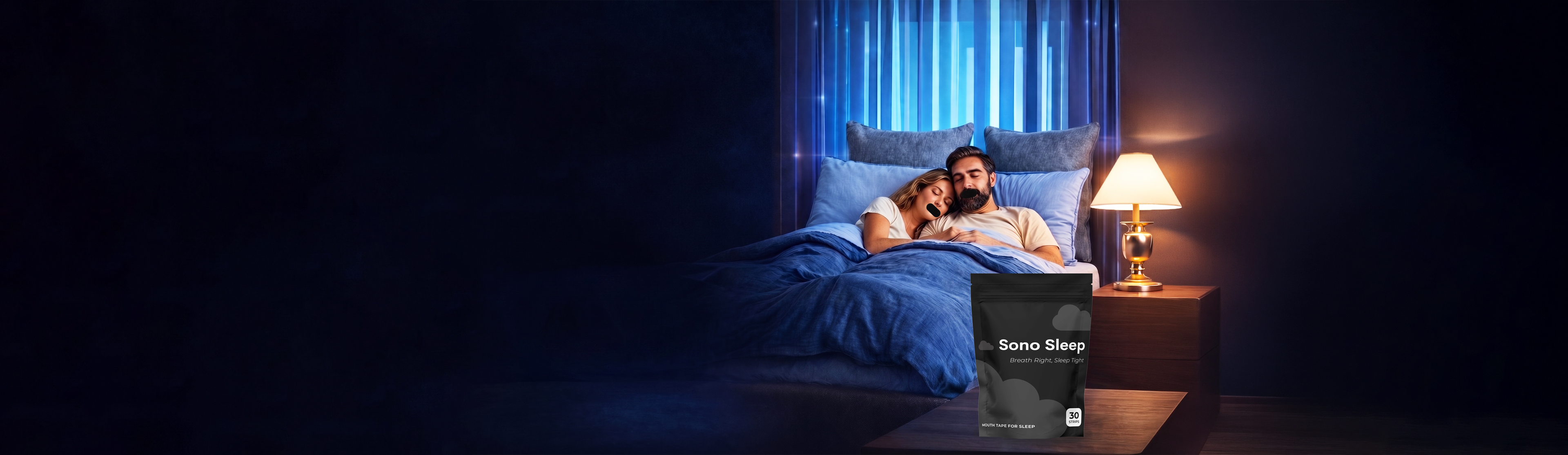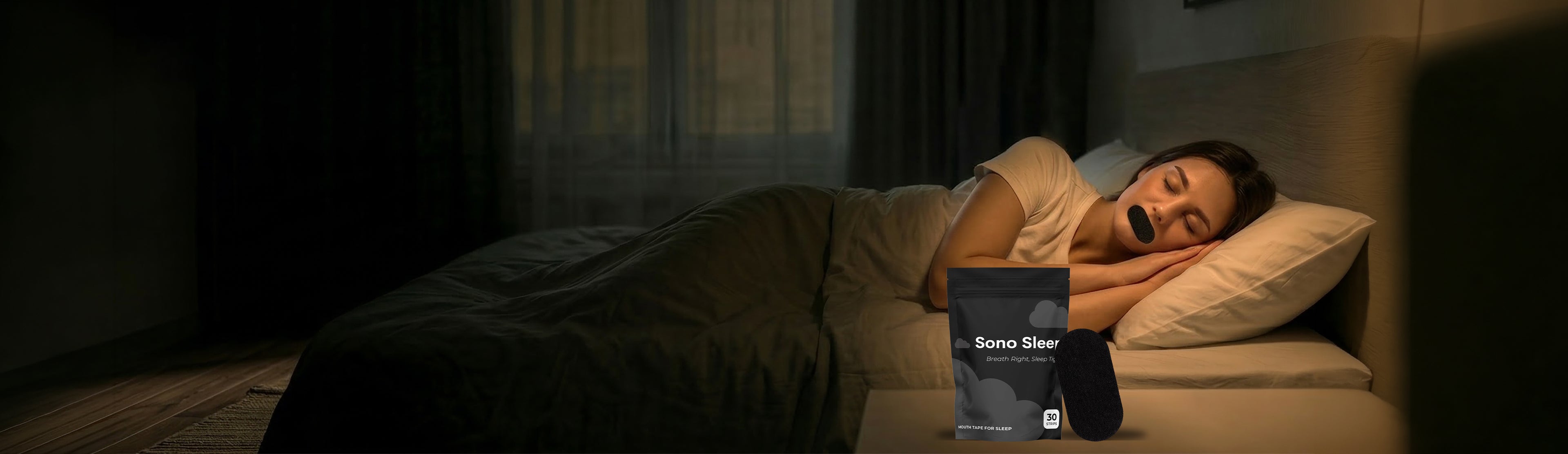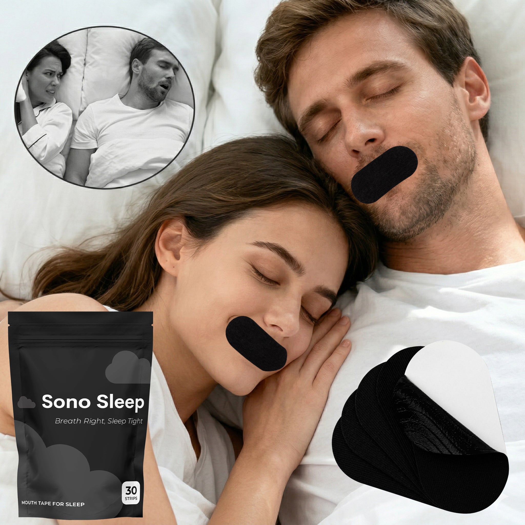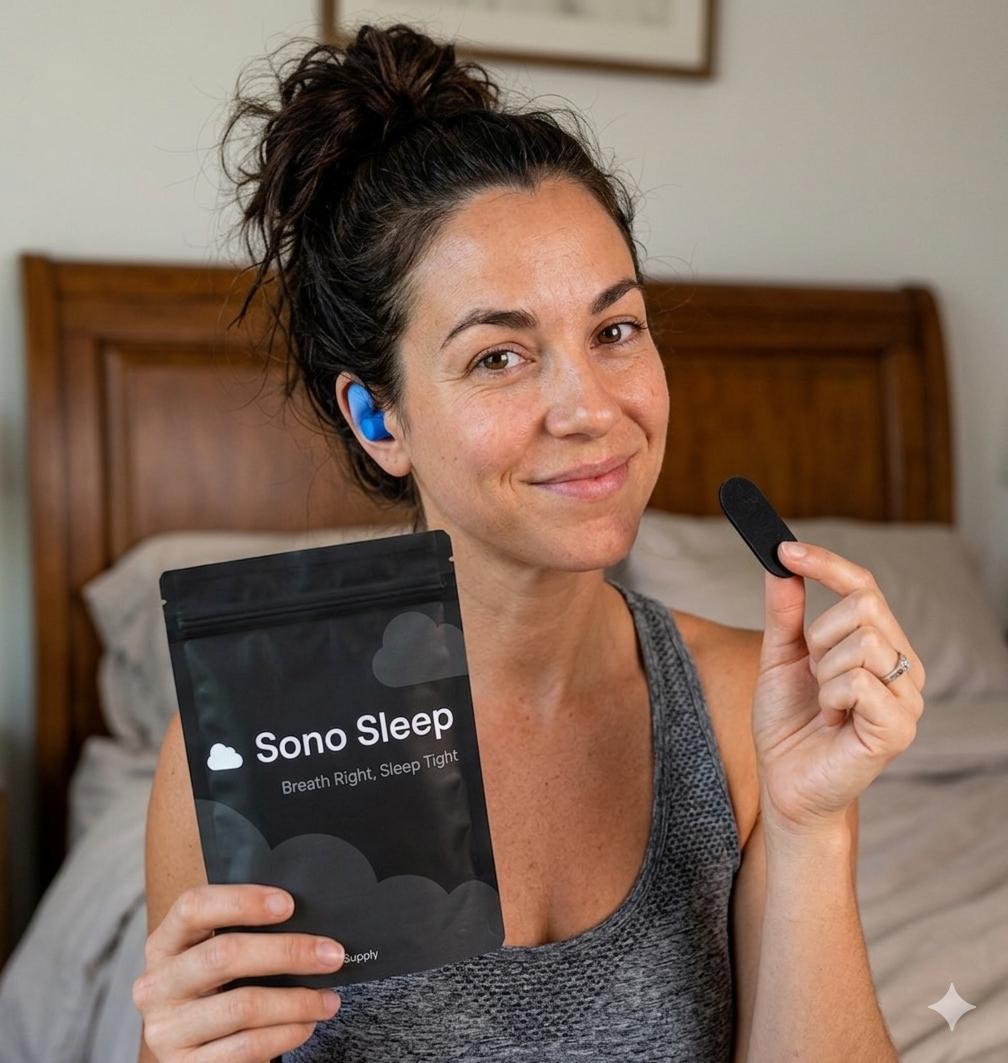 Sono Sleep is made from a breathable, hypoallergenic fabric with just the right stretch, secure enough to stay on all night, gentle enough to peel off with zero irritation. No pinching. No pulling. No sticky residuce